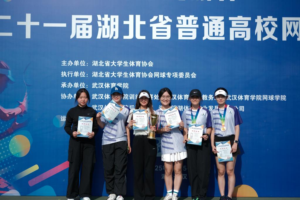 (通讯员 王泽华)2025年11月15日至16日,第二十一届“尤尼克斯杯”湖北省普通高校网球比赛在武汉体育学院举行。我校网球队在比赛中发挥出色,于大学甲组男子团体、女子团体,大学丁组男子双打、女子双打以及教职工乙组混合团体等项目中均取得季军,展现出良好的竞技状态与团队风貌。