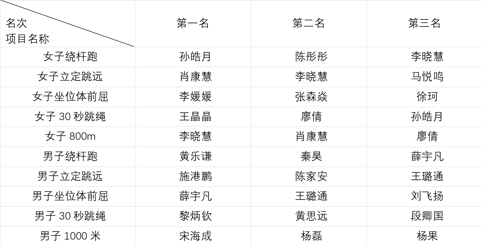 本次达标赛共设绕杆跑、立定跳远、坐位体前屈、30秒跳绳、男子1000米和女子800米跑五个项目,吸引了来自田径、健美操、武术散打、女子足球、女子排球、乒乓球、定向越野、武术套路、体育舞蹈、休闲体育微专业等多支代表队以及各学院个人报名者共计249人参加。参赛选手均为18—24岁在校学生,充分展现了青年学子在速度、耐力、灵敏、柔韧等方面的综合身体素质。