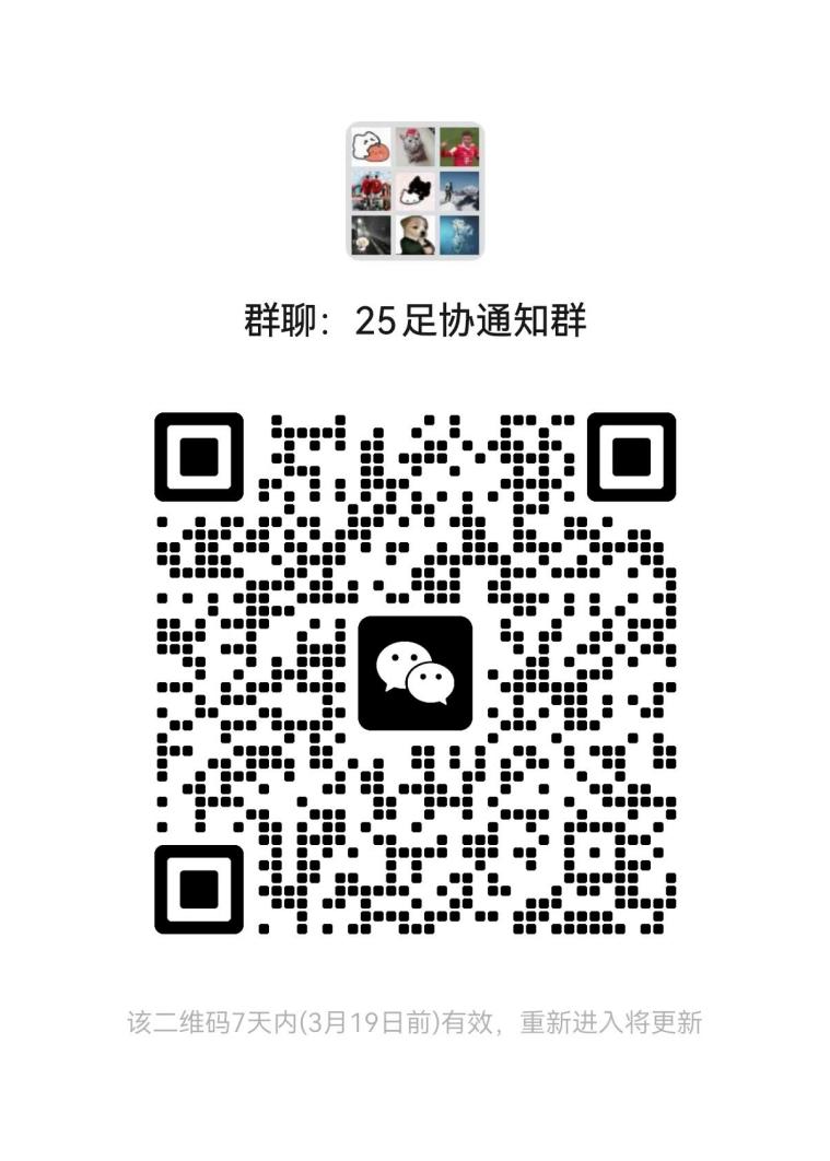 后续事宜将在本年度足协通知群中发布,各队两名负责人入群为宜。群二维码如下: